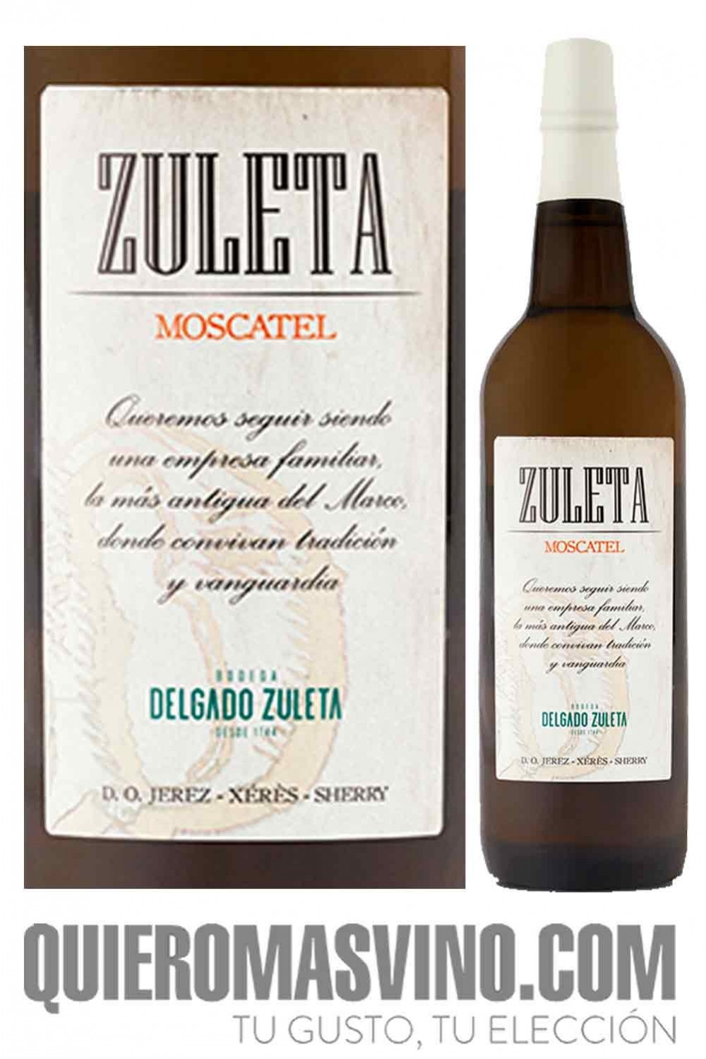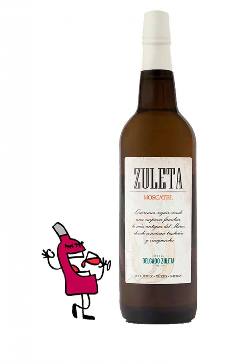 Moscatel Zuleta es un vino dulce natural elaborado con uvas 100% Moscatel procedentes de viñedos cercanos al mar. Crianza de 2 a 3 años mediante el sistema tradicional de criaderas y soleras en botas de roble amerciano.