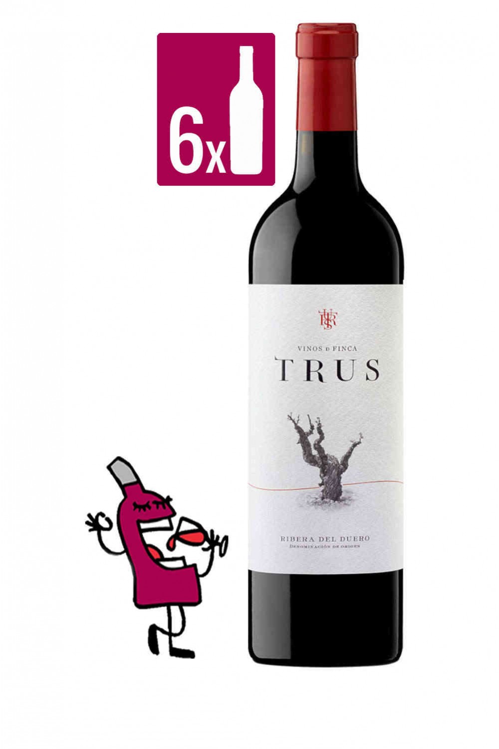 Trus Roble es un vino tinto joven con crianza elaborado con uvas 100% Tinto Fino. Vendimia manual en el momento óptimo de maduración para conseguir un vino joven y frutal. Elaboración tradicional en depósitos de 24.000 litros. Encubado durante 10 días a 24 ºC, buscando equilibrio entre la fruta y la extracción. Crianza de 4 meses en barrica.